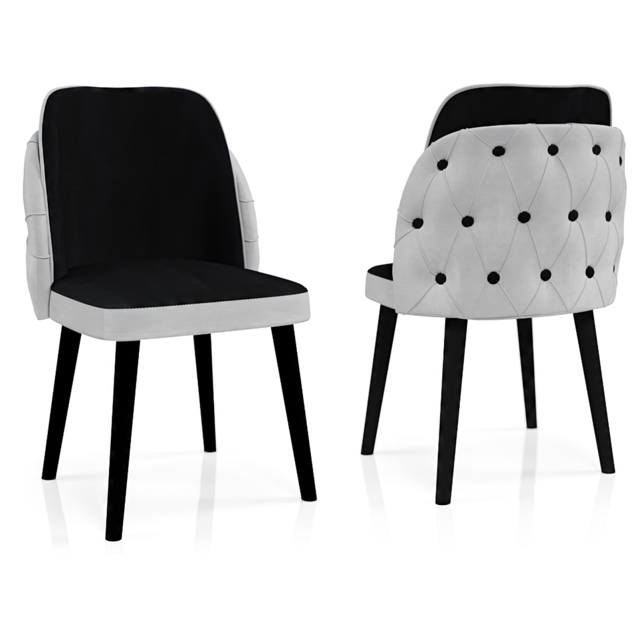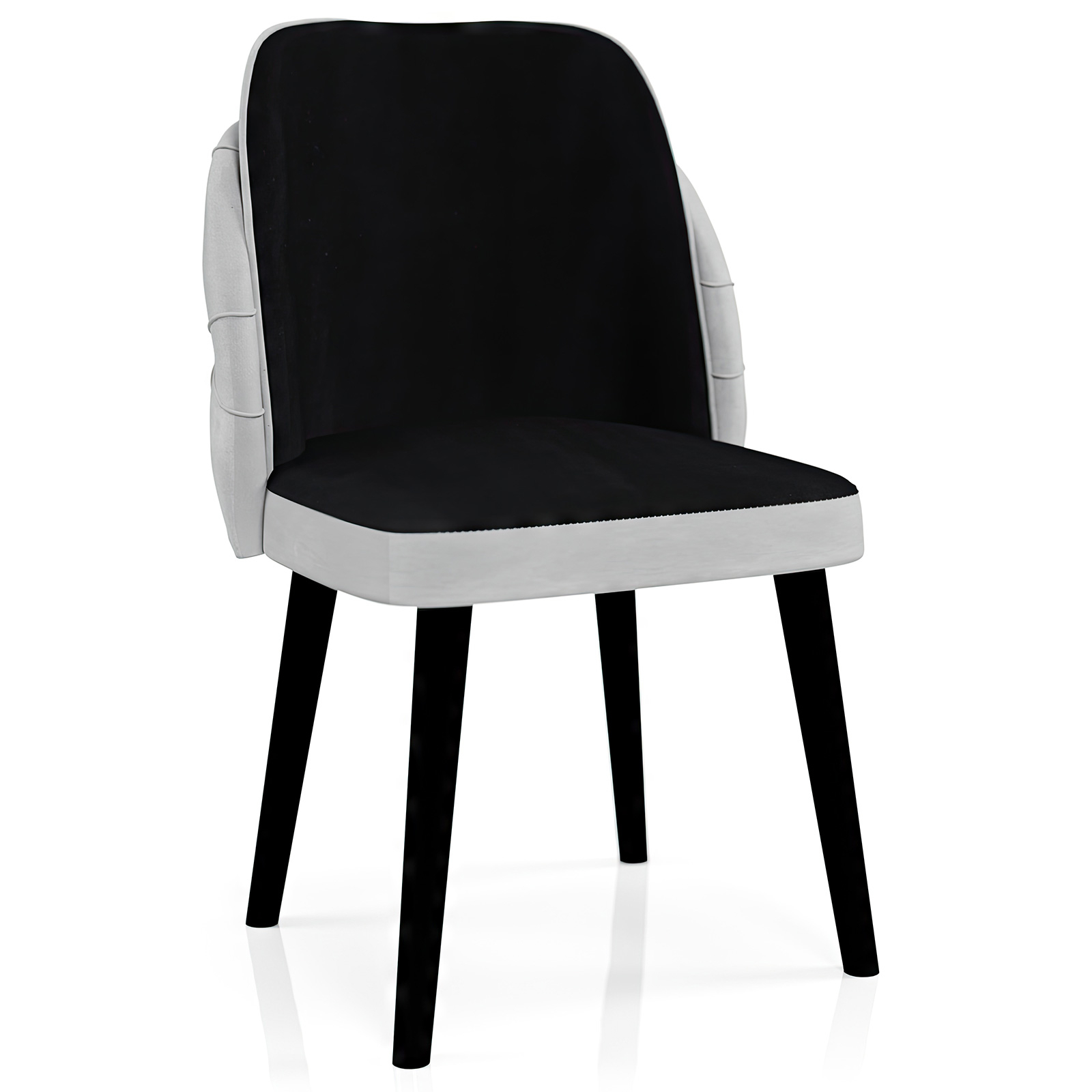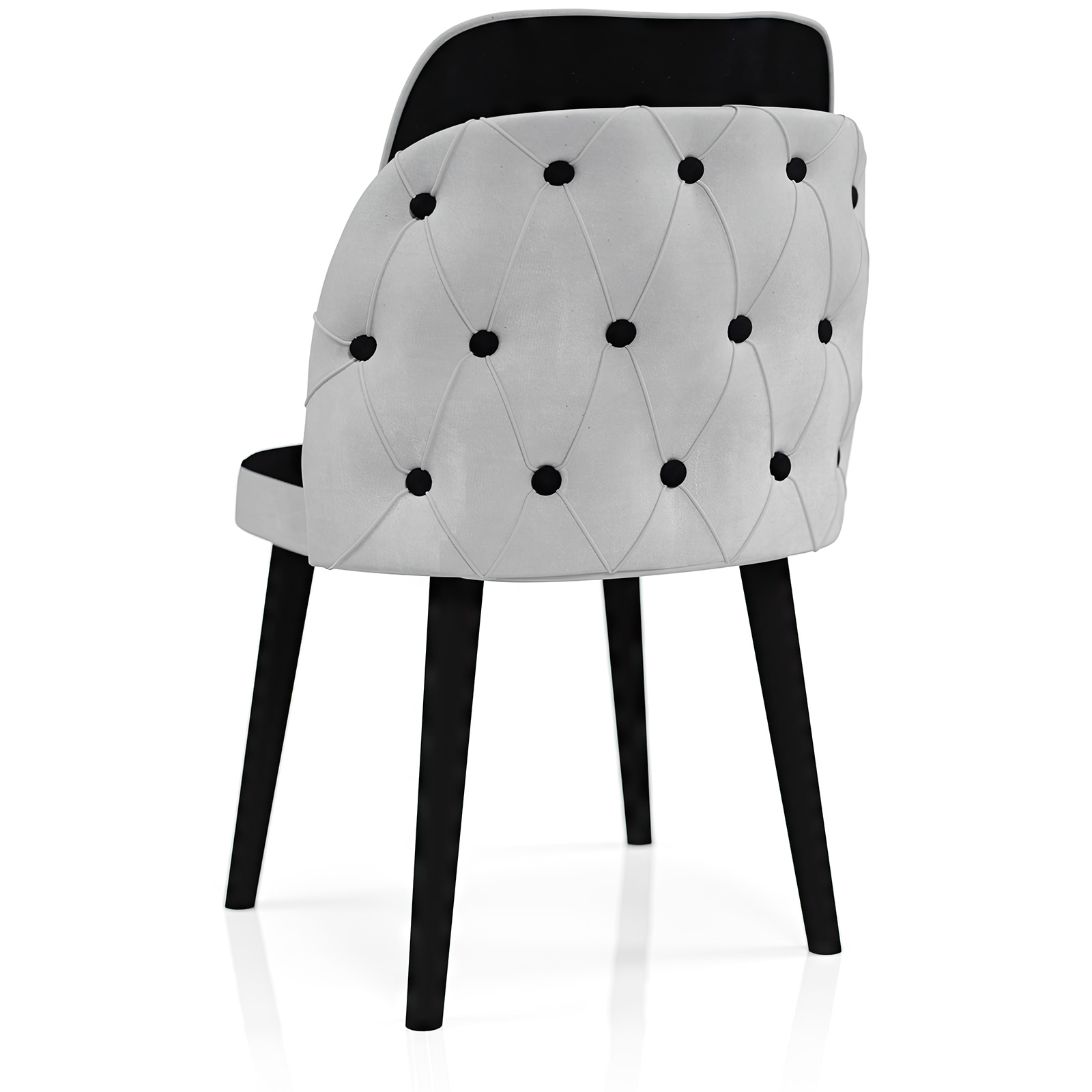 Realizat cu un cadru interior din carpen rezistent, Scaunul Royale Gri-Negru se evidențiază prin materialul de burete gros, oferind un confort maxim la ședere. Rama din lemn de înaltă calitate și țesătura luxoasă "babyface" garantează atât durabilitate, cât și o senzație plăcută la atingere. Picioarele din lemn sunt finisate cu o vopsea premium, asigurând un aspect elegant și o protecție de lungă durată.