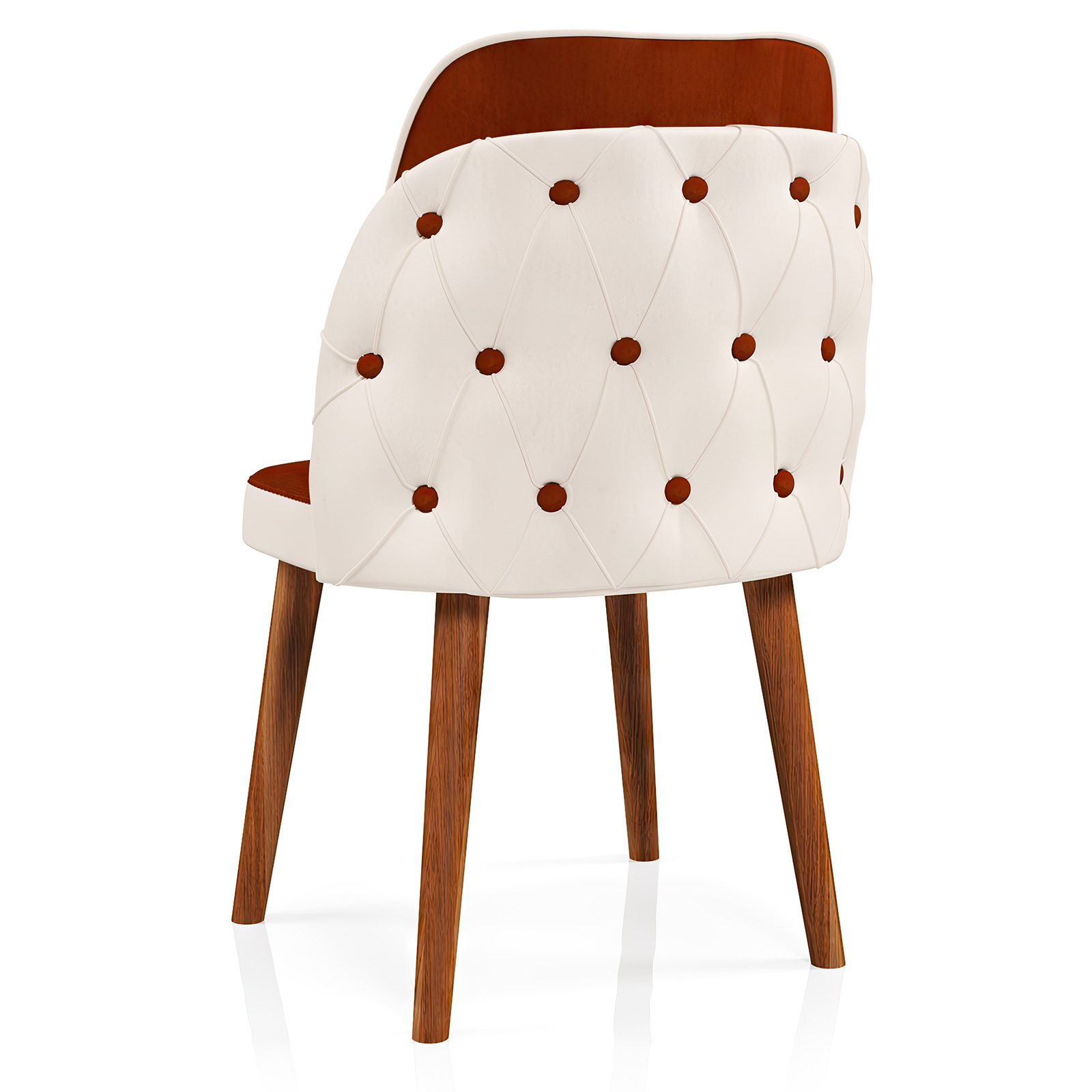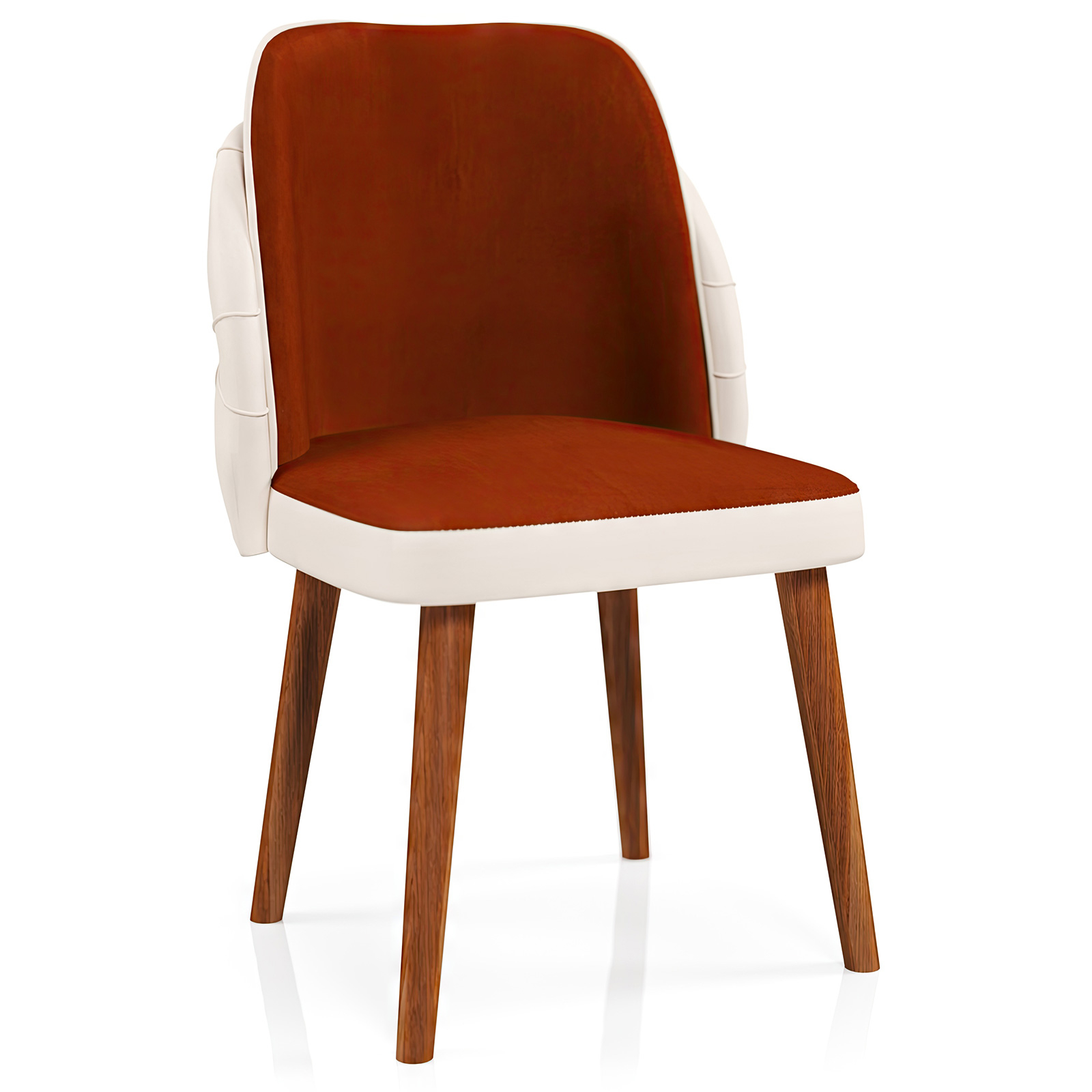 Realizat cu un cadru interior din carpen rezistent, Scaunul Royale Caramida-Crem se evidențiază prin materialul de burete gros, oferind un confort maxim la ședere. Rama din lemn de înaltă calitate și țesătura luxoasă "babyface" garantează atât durabilitate, cât și o senzație plăcută la atingere. Picioarele din lemn sunt finisate cu o vopsea premium, asigurând un aspect elegant și o protecție de lungă durată.